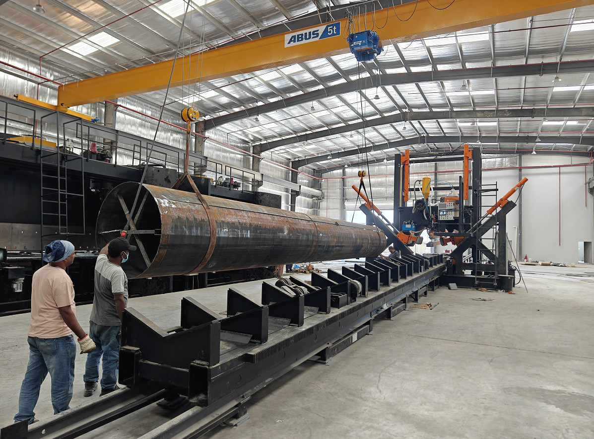 Máquina de soldadura de fecho de pólo e monopólio, é adequado para uma concha ou duas conchas tipo pólo cónico poligonal e círculo. é linha de soldadura automática,a estrutura do tipo de pórtico é fixa e com sistema de soldaO cilindro hidráulico empurra a roda de fixação para fechar o poste e fazer a solda ao mesmo tempo.
