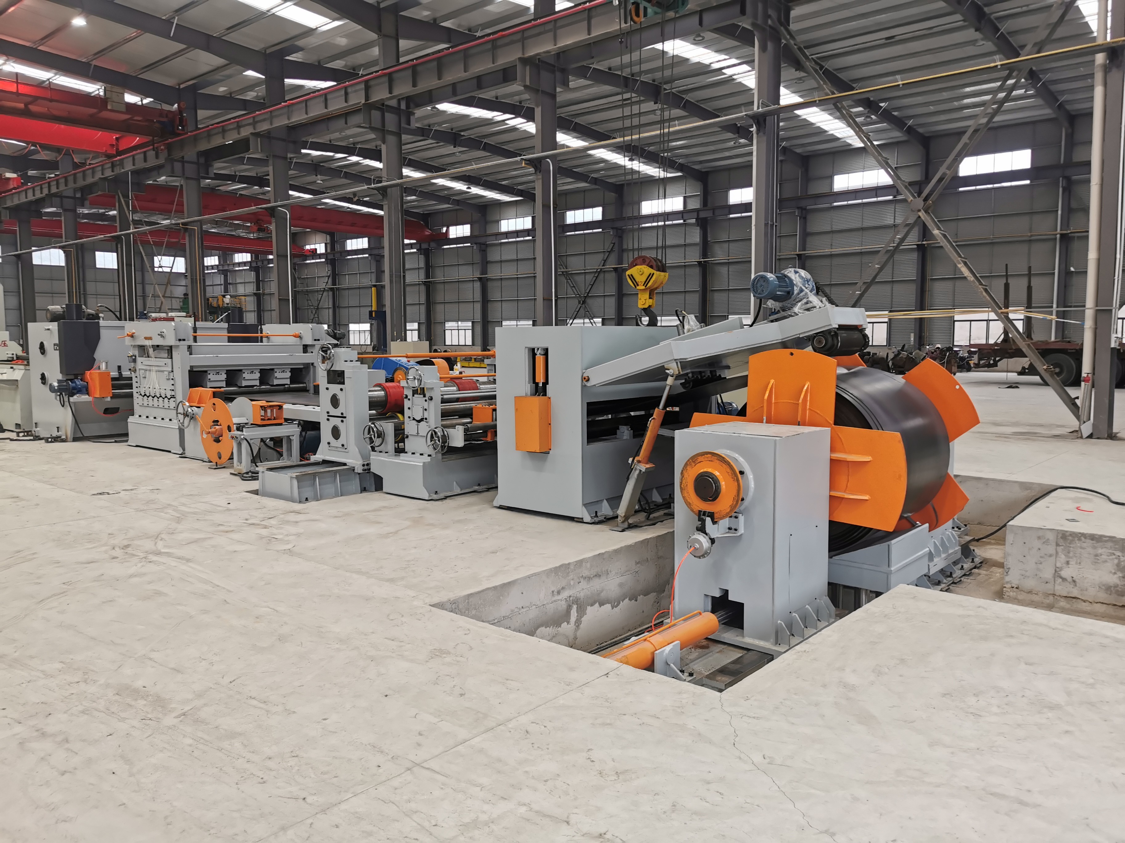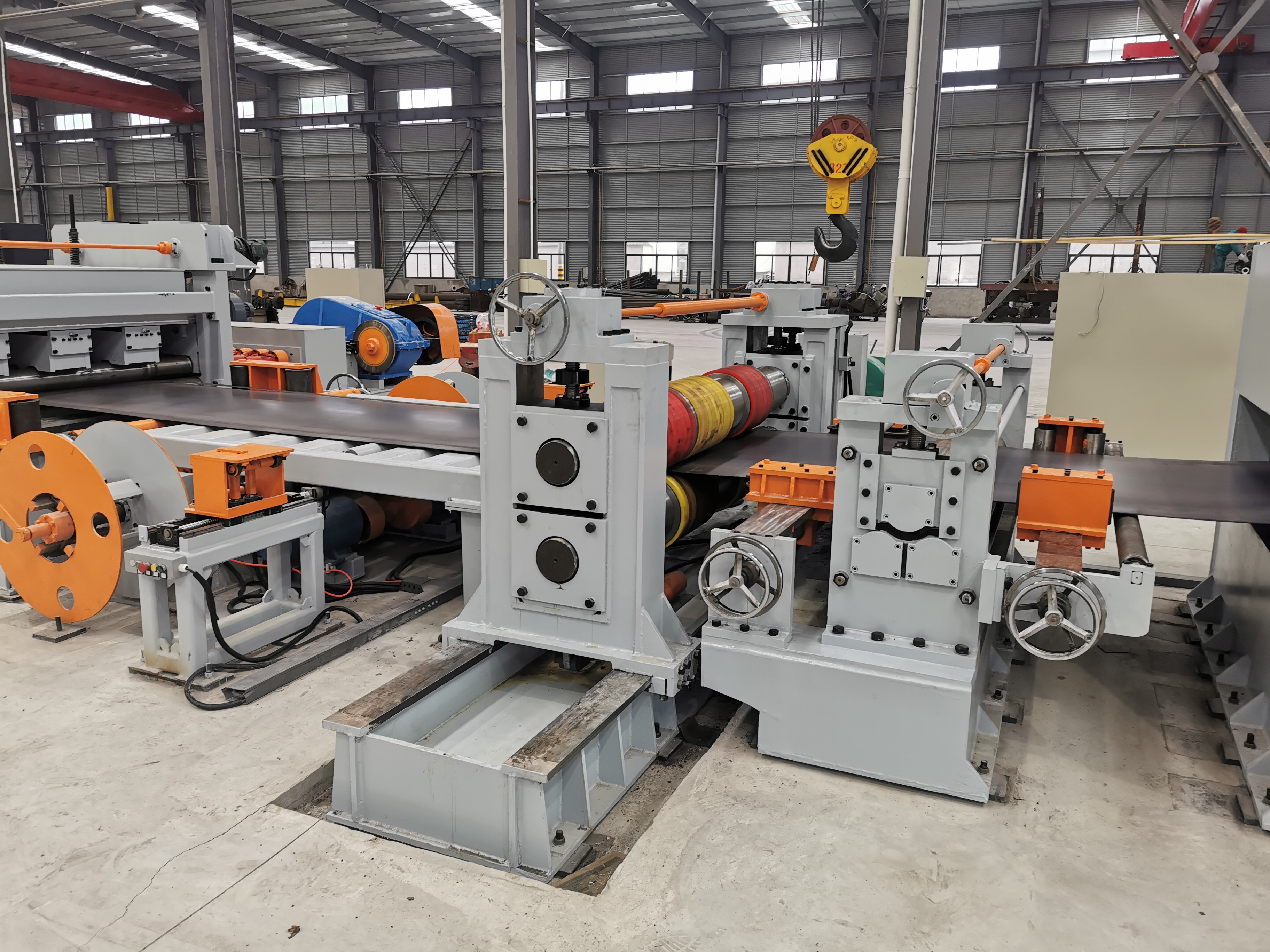 É para desbobinamento, nivelamento, corte, corte de borda de raspagem e processo de corte cônico de material de poste de luz, para obter uma largura lateral pequena, uma placa de aço de largura grande.